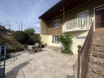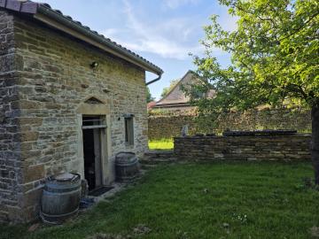 Secteur Chapaize. Belle situation dans un village de caractère. Maison ancienne avec jardin et terrasses. Habitation d’environ 130m² répartie sur un rez-de jardin et un étage avec possibilité d’extension dans grenier (sous condition des autorisations nécessaires). Actuellement séjour avec coin cuisine et poêle à bois, salon donnant sur le jardin, toilettes, cave. Etage composé de 3 chambres dont une donnant sur la terrasse dominante, une salle de bains avec toilettes, rangement. Grand grenier à l’étage. Chauffage électrique par radiateur ROTHELEC + 2 poêles à bois (séjour/salon). Toiture refaite (5/10ans). Joli jardin donnant sur la campagne, et terrasse avant ouverte sur le village avec vue. Commerces/Gare et accès autoroutier à peu de distance. Très agréable ensemble avec potentiel.