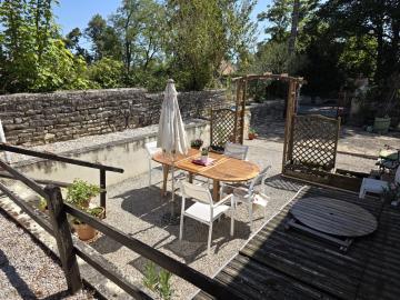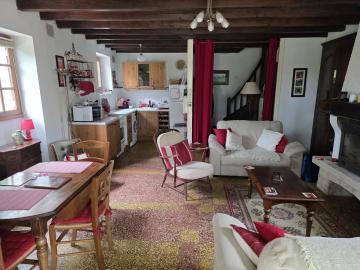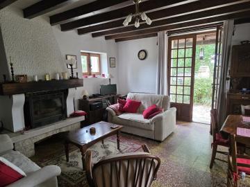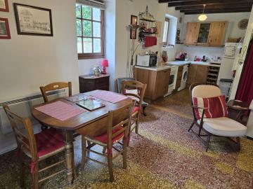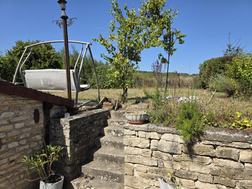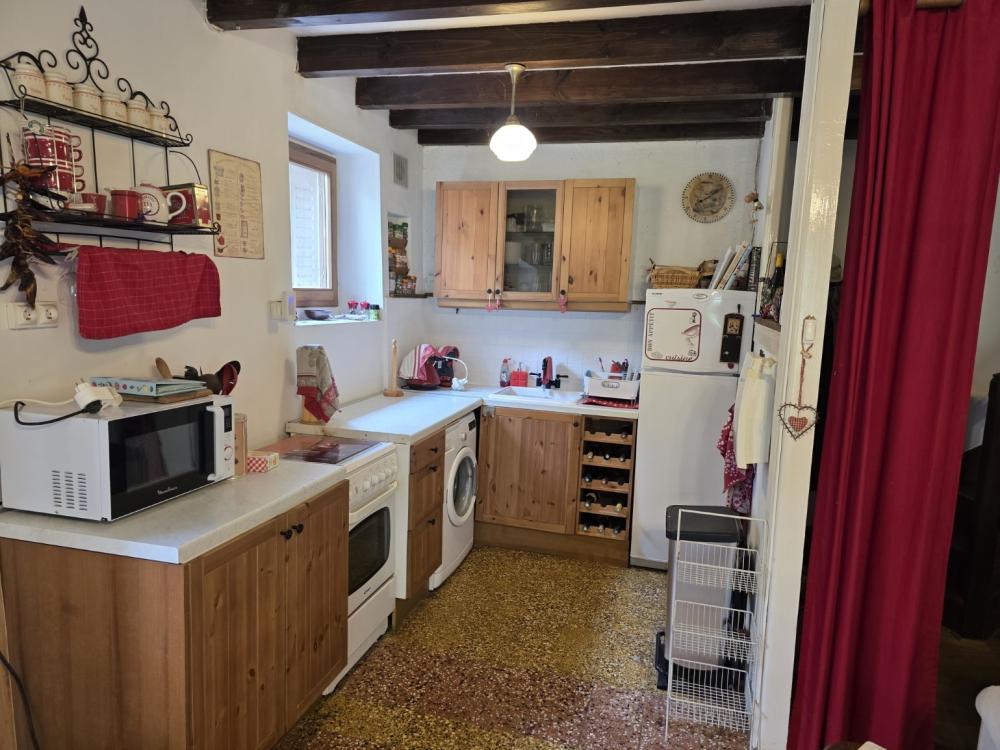 Proximité St Gengoux Le National. Charmante petite maison de village avec jardin. Habitation d’environ 60m² répartie sur un rez-de-chaussée et un étage avec grenier au-dessus. Séjour avec cheminée insert et coin cuisine, petit dégagement avec toilettes et escaliers desservant l’étage composé de 2 chambres et une salle d’eau avec toilettes (broyeur). Grenier. Chauffage électrique. Petit garage et remise. Ensemble sur 363m² avec vue. Commerces à peu de distance. Idéal pied à terre ou premier achat.