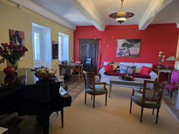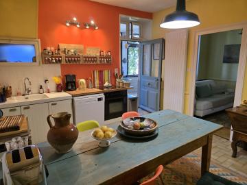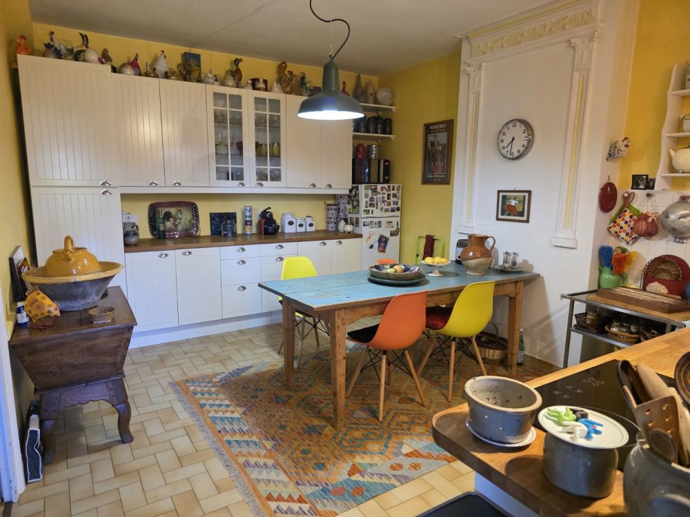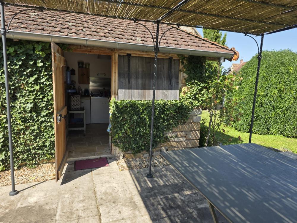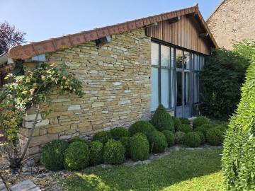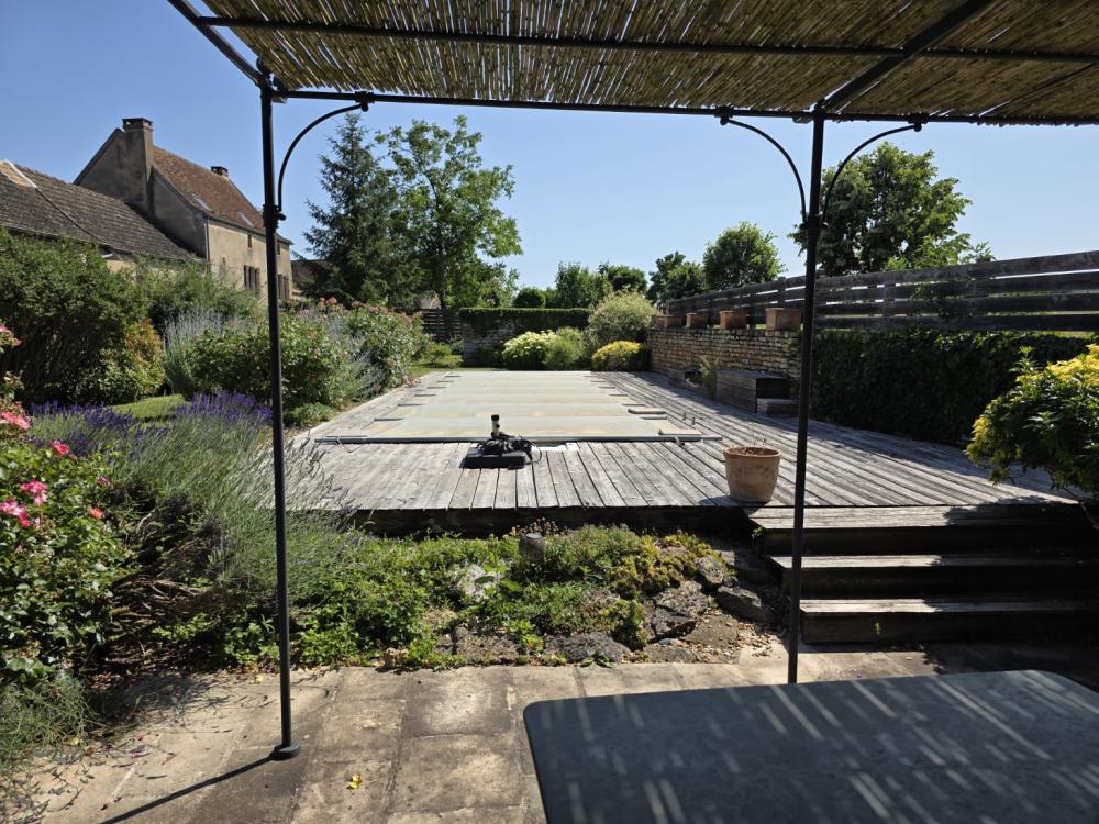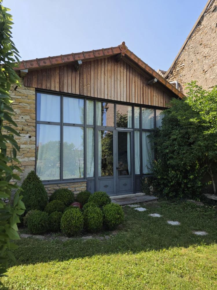 Environs St Gengoux Le National. Bel ensemble de caractère avec jardin, dépendances et piscine. La maison principale accessible depuis la galerie en partie fermée, se compose d’une grande cuisine aménagée, une pièce de passage avec escaliers donnant sur le séjour, une salle d’eau avec toilettes. L’étage proposant, une grande pièce ouverte avec coin couchage, une chambre et salle d’eau avec toilettes. Le tout sur cave. Une première annexe fut transformée de telle sorte que deux chambres avec salle d’eau et toilettes puissent accueillir famille/amis, puis une seconde devenue un superbe atelier d’artiste s’approchant du jardin et de la piscine (chauffée) avec terrasse et cuisine d’été. Ensemble sur 950 m². Situation au cœur d’un village typique à peu de distance des premiers commerces. DPE/D – GES/42 du 31/10/2024. Montant estimé des dépenses annuelles d’énergie entre 2 190€ et 3 030€.