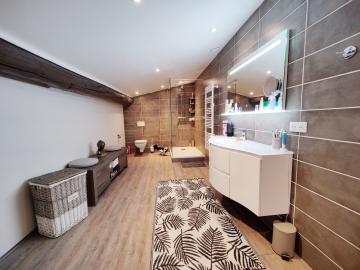 Maison en pierre d’environ 280 m² habitables avec volumes généreux, cadre verdoyant, proximité immédiate des établissements scolaires (collège et lycée), de la voie verte et des principaux axes routiers. Terrain clos de 3 487 m². Extérieurs bien aménagés et entretenus : piscine, terrain de pétanque dépendances (remise, abri, garage, carport). La maison s’organise sur 3 niveaux, avec des espaces fonctionnels et confortables à chaque étage. Au rez-de-chaussée : cuisine, grande pièce de vie avec cheminée insert, salle d’eau avec toilettes, ainsi qu’une buanderie, une grande chaufferie, cave et atelier. Le 1er étage se compose d’une salle à manger, un salon, une seconde cuisine, et 2 chambres, dont une avec salle d’eau/WC. Le dernier niveau comprend 3 chambres supplémentaires, une grande salle d’eau/wc et un grenier. Le RC et le 1er étage sont possiblement accessibles de façon indépendante. La maison est équipée d’une chaudière gaz Viessmann, d’une cheminée insert et de fenêtres double vitrage assurant un bon confort intérieur malgré la proximité des axes routiers. Stores automatiques réglables à distance. 2 portails motorisés, dont un avec accès direct aux établissements scolaires. Toiture refaite en 2024. Ideal grande familles et/ou possibilité de studio indépendant. DPE/D et GES/D réalisés le 15/01/2025. Estimation des coûts annuels du logement entre 4970 € et 6780 €.