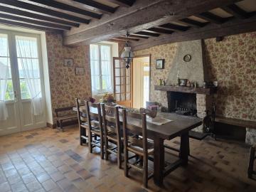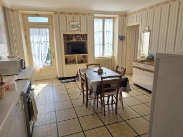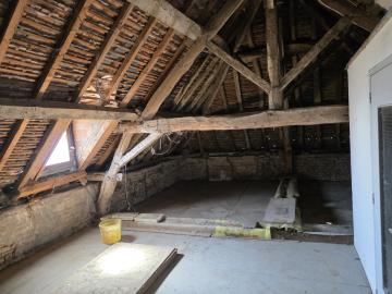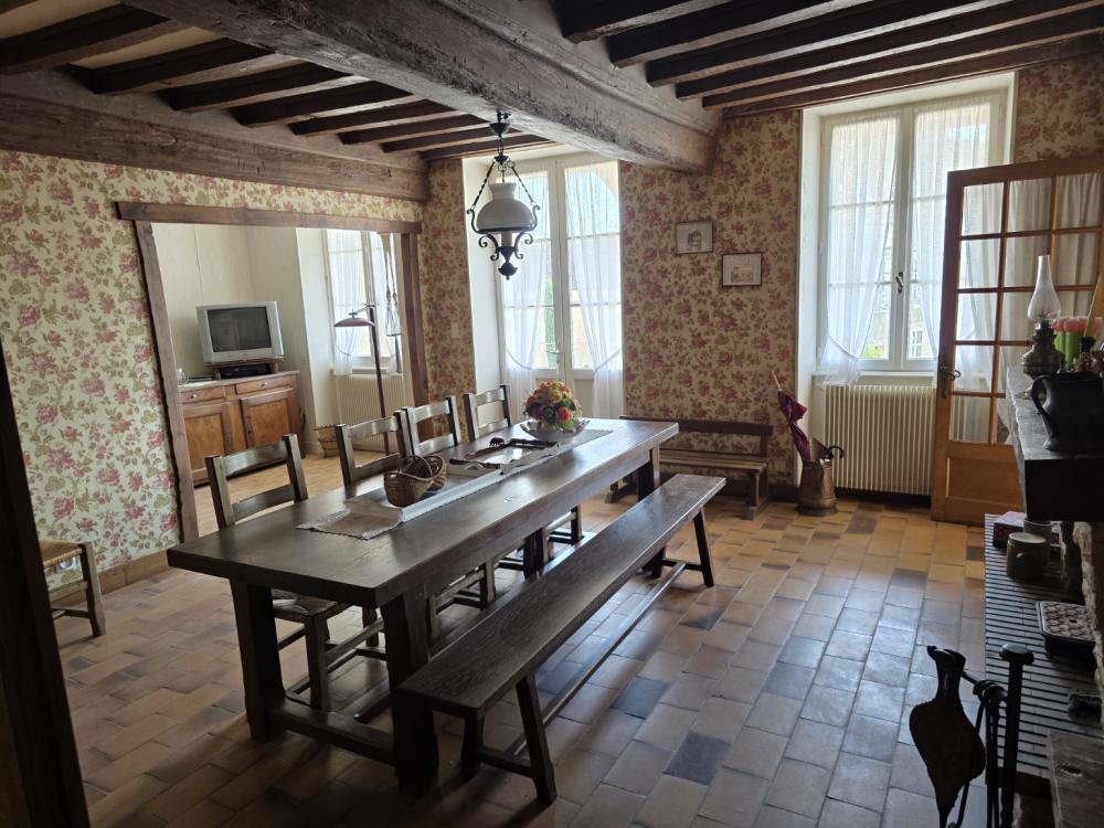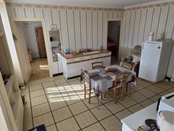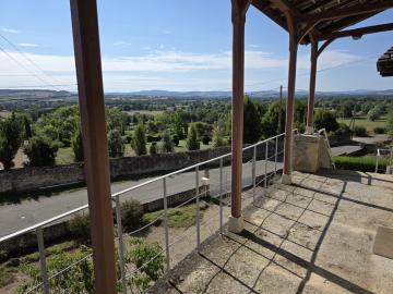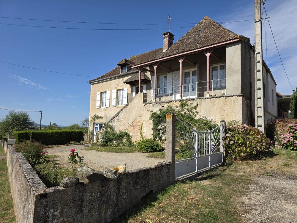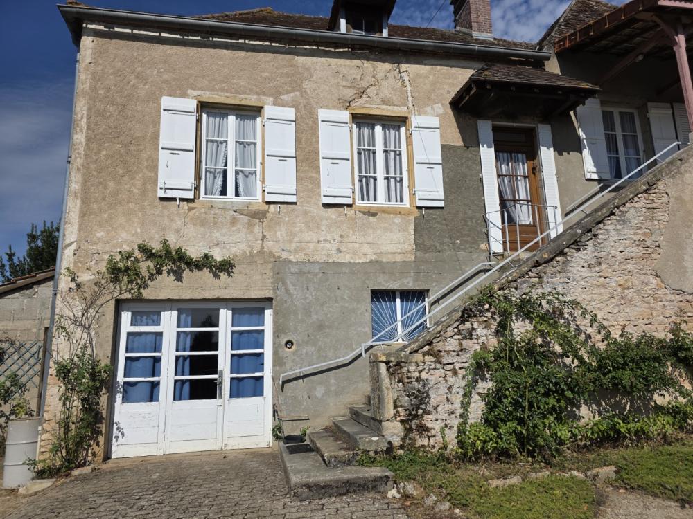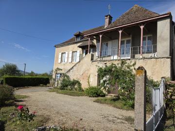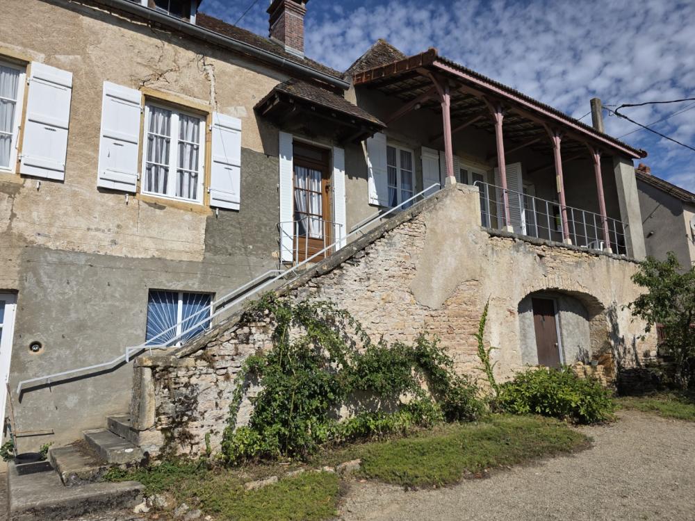 Maison située dans les environs de St Gengoux Le National. Très belle situation avec vue pour cette ancienne maison de village avec jardin, à peu de distance des commerces. L’ensemble avec dépendances repose sur 464 m² de terrain. L’habitation se compose d’une grande cuisine lumineuse, un séjour avec cheminée, alcôve, petit bureau, 2 chambres et une salle d’eau avec toilettes. Le tout équipé d’un chauffage central fuel. Etage supérieur avec beau grenier (accès avec escalier bois en place). Une belle galerie/terrasse fait face à la vue et distribue les pièces principales. Beaux volumes de dépendances avec garage, cave et remise. Ensemble très propre mais à remettre aux goûts et normes actuels avec donc des travaux à prévoir.