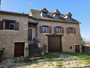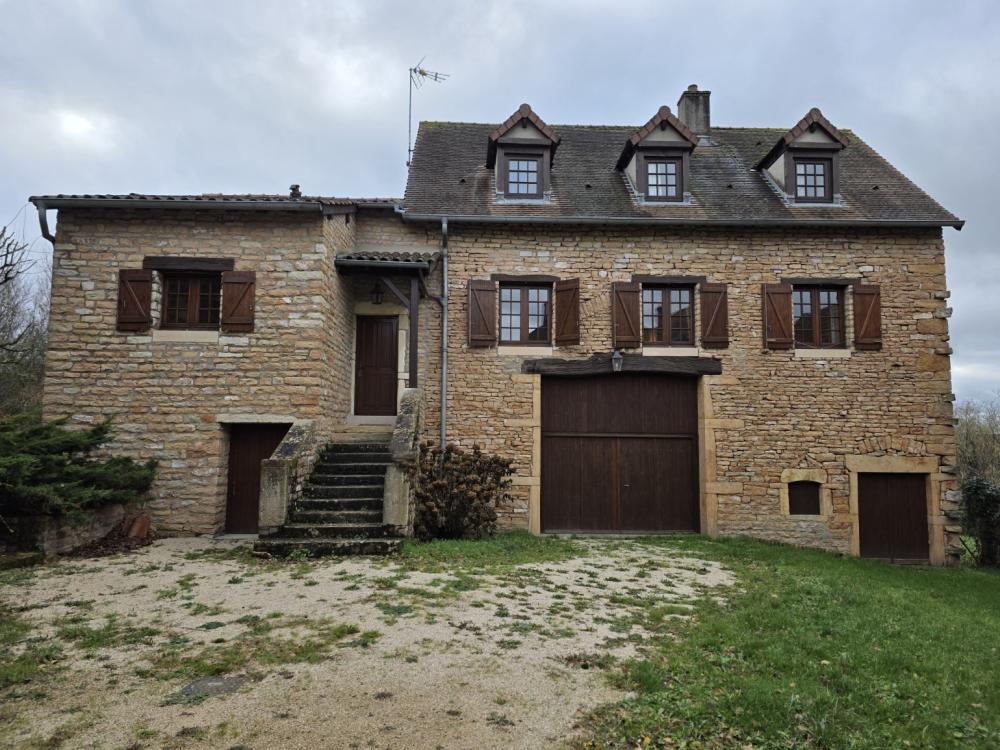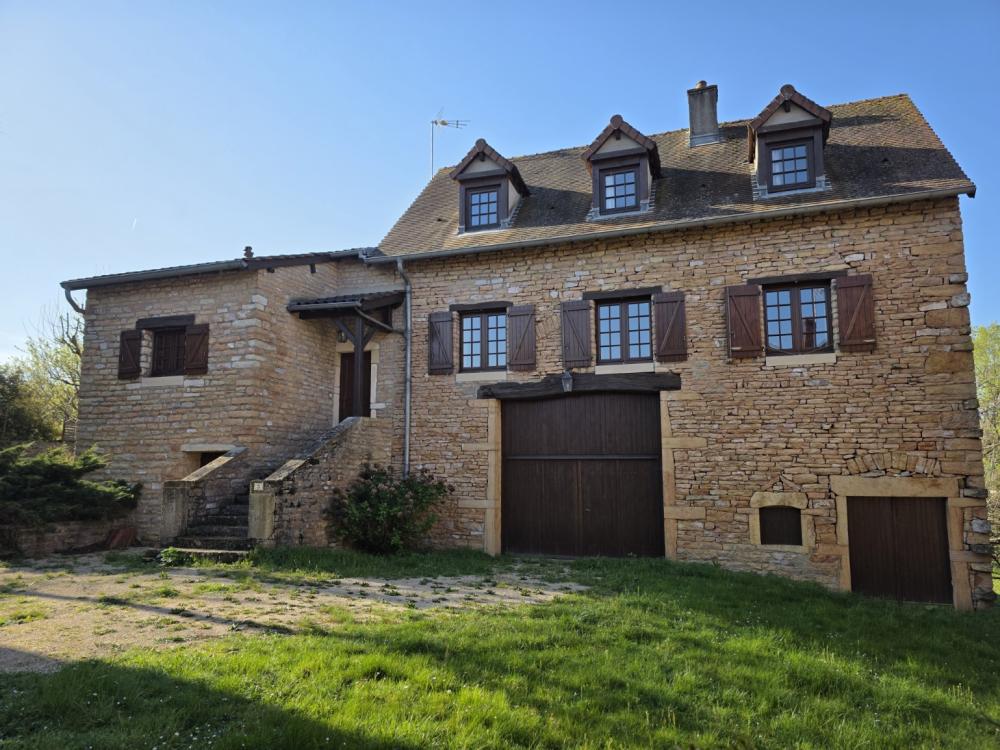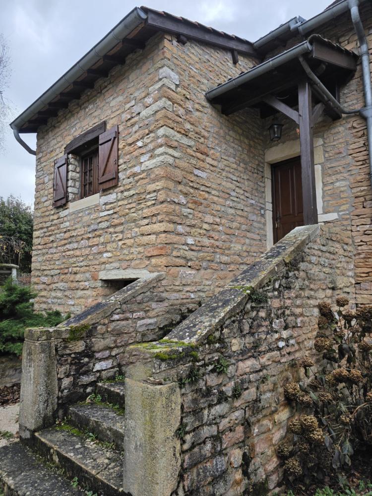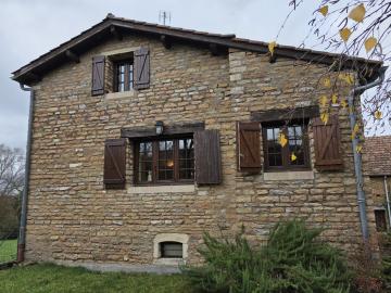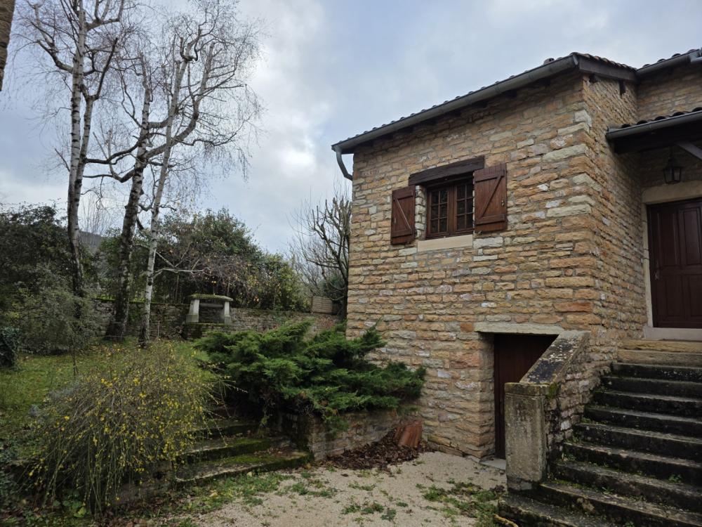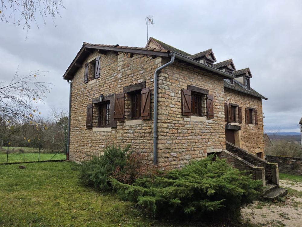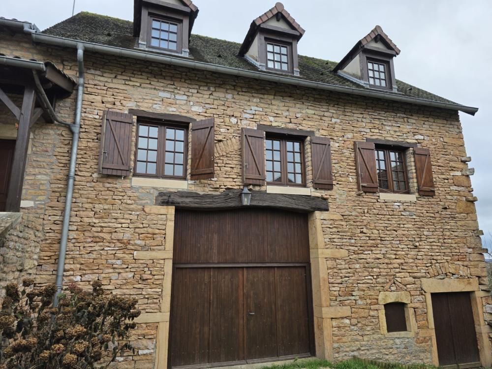 Environs Chapaize. Très agréable maison ancienne en pierre rénovée dans les années 1987. L’habitation d’environ 150 m², sur caves et dépendances, se répartit sur deux niveaux, offrant de beaux volumes, et une distribution bien pensée. Le premier niveau propose une grande cuisine (31 m²) ouverte sur le séjour (37m²), un petit dégagement qui dessert une chambre, une salle d’eau et des toilettes. L’étage supérieur se compose d’un grand dégagement qui distribue un bureau/chambre (sous forme de mezzanine dominant la cuisine), 2 chambres supplémentaires, une salle d’eau et des toilettes. Ensemble équipé d’un chauffage électrique par convecteurs dont 3 ont été changés en 2016. Toiture refaite en 1987. Les dépendances situées sous l’habitation se composent d’une grange, une écurie et une cave. La situation est calme et agréable en bout d’une petite impasse, et le tout bénéficie d’une cour et d’un charmant petit jardin totalisant 386 m². Très agréable ensemble au cœur d’un village typique de la Bourgogne Sud, à peu de distance des commerces. DPE/G GES/C du 06/11/2025. Estimation des coûts annuels d’énergie entre 4 880 € et 6 640 €.