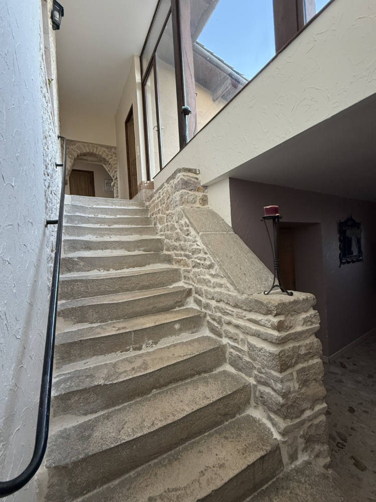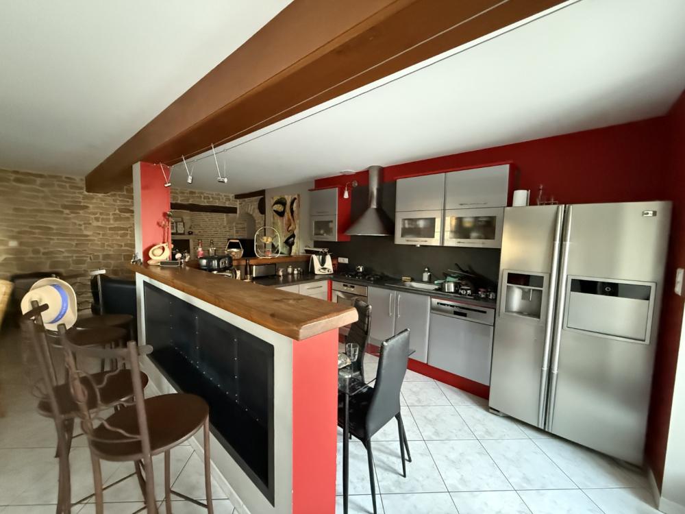 Au cœur d’un village, proche de Tournus, cette maison allie le charme de l’ancien au confort moderne. Elle offre 3 chambres, de beaux volumes et 2 terrasses qui prolongent les espaces de vie. Dès l’entrée, le marbre d’origine, l’escalier en pierre et les murs en pierre apparente témoignent de l’authenticité et du caractère de la bâtisse. Au rez-de-chaussée, un espace indépendant permet de créer une chambre d’appoint ou un bureau, avec coin d’eau et WC. Au 1er étage, une grande pièce de vie avec cuisine qui s’ouvre sur une grande terrasse. 2 chambres avec dressing, une salle de bain et WC indépendant complètent ce niveau. Au dernier étage, une suite parentale réunit chambre, dressing et salle d’eau dans un espace ouvert et fonctionnel. Côté confort, la maison bénéficie du double vitrage, d’un chauffage électrique performant avec plancher chauffant dans la pièce principale et d’une régulation programmable. Les dépendances comprennent une cave, un atelier, un débarras, un garage et un grenier. Le terrain clos dispose d’un abri situé sous la terrasse. Authenticité et confort : une maison pleine de charme, idéal pour une famille ou un couple à la recherche d’un cadre de vie agréable. Dpe/E - Ges/B du 27/05/24. Estimations coûts annuels d’énergie entre 2330 € et 3210 €.