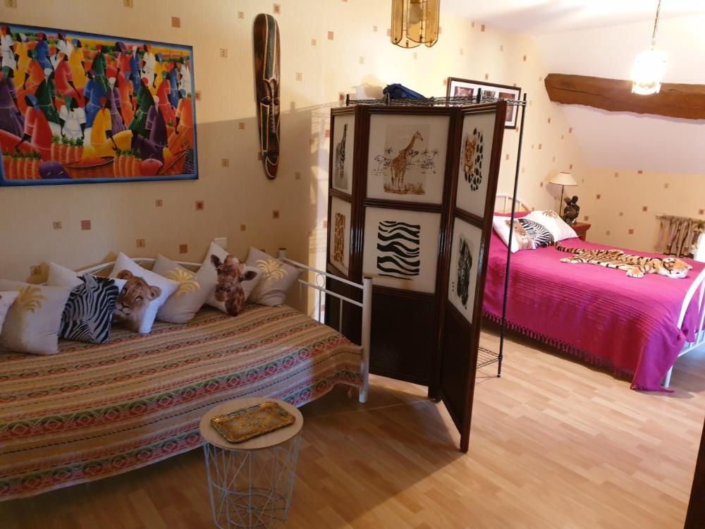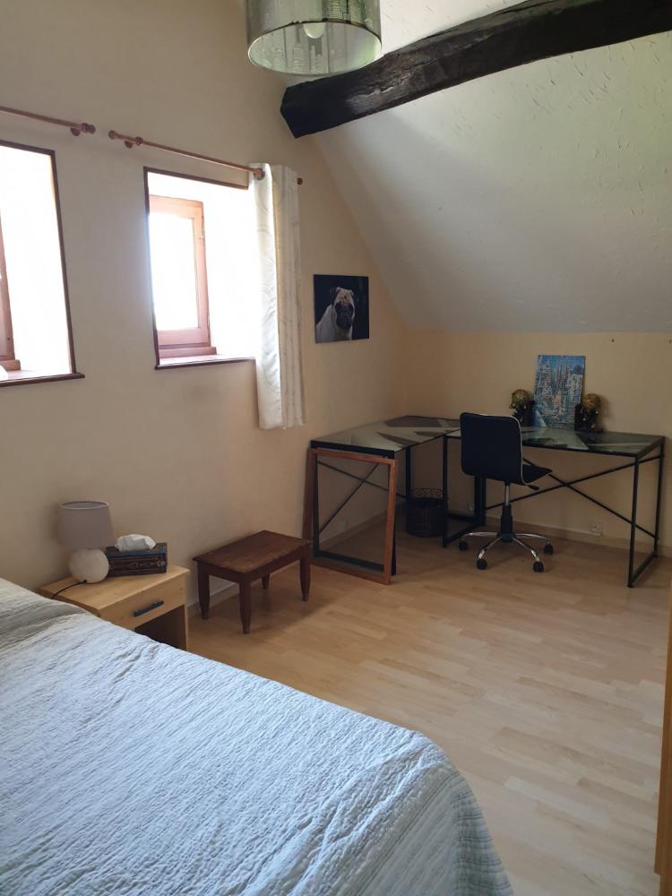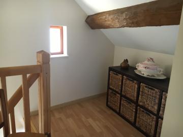 Gite avec dépendances et jardin détaché face à la maison principale. Environ 80m² composé d'une pièce principale avec coin cuisine, une salle d'eau et wc au rez-de-chaussée. Une grande chambre à l'étage. Une pièce de 27 m² attenante pouvant communiquer avec la pièce principale du gite sous condition d'ouverture du mur. Dépendances à usage de grange, écuries et remise. Cour attenante à la grange et jardin (228m²) à quelques pas.